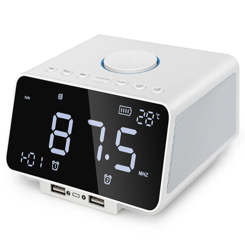 HIGH QUALITY Led Alarm Clock Fm RadioWith Wireless Bluetooth Speaker PlayerUsb Fast Charge Port Tf Card PlayIndo
