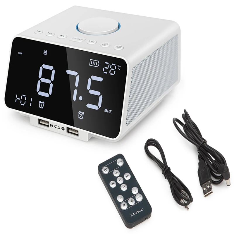 Led Alarm Clock Fm RadioWith Wireless Bluetooth Speaker PlayerUsb Fast Charge Port Tf Card PlayIndo