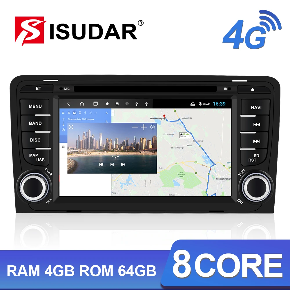 Isudar H53 2 din Car Radio Multimedia Player Android For Audi/A3/S3 2002-2013 GPS Octa Core 4GB 64G